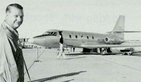 The man and the plane, the first JetStar prototype. In this configuration it would make its first flight on 4 September 1957.