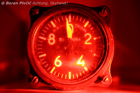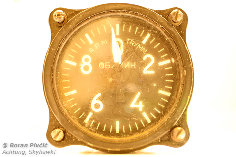 Namely, a few days ago at the field I had come across – completely by chance – an old Soviet/Russian tachometer, which I had initially presumed to be from our old Yakovlev Yak-52, 9A-BUG. A quick counter through my photos of the said aircraft later revealed that this might not be the case, but I still found this little instrument interesting – and before consigning it to the role of an attractive paper weight, I thought I might as well see if it was a worthy photo subject…