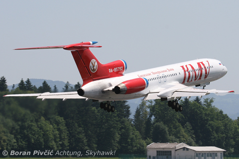 A beautiful - and freshly repainted! - KMV Tu-154M just starting its gear retraction sequence after a noisy RWY 13 departure, bound for Moscow. Ever since Aeroflot pulled the 154 from commercial service, they've become an increasingly rare sight, European spotters now having to make do with occasional charters such as this one...Climbing out with the 154's typical shallow profile, intended to quickly accelerate the aircraft to its 550 km/h (296 kt) optimal climb speed. Little known outside the lands of the former USSR, KMV actually stands for "Kavkazskie Mineralnye Vody" - or "Caucasian Mineral Waters". The name makes more sense when you know that the airline is based in the Russian town of Mineralnye Vody, located on the Caucaus, in an area known for its abundant mineral springs 🙂