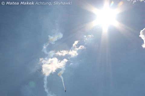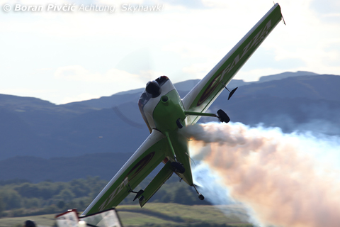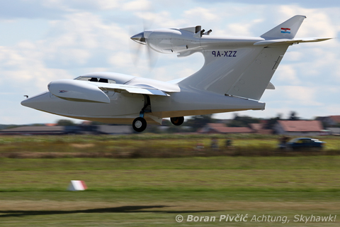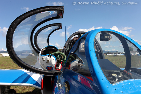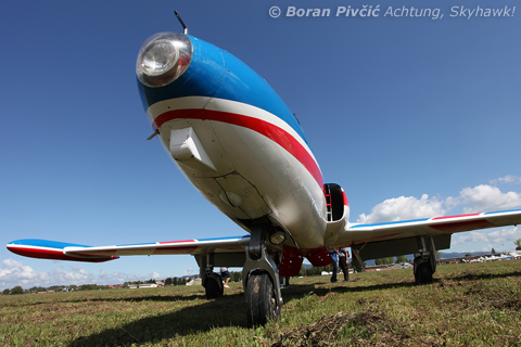 This after all being "Achtung, SKYHAWK!", I had to start off with... well some Skyhawks :D. Incidentally, these three N models and one R - representing my university's aviation department - are all the 172s I've flown so far, with 9A-DDD (in the bottom right corner) the aircraft on which I've logged the most hours 🙂 (normally owned by Ecos Pilot School - where I got my wings - but currently on loan to the university)The afternoon's building cumulus clouds had provided some outstanding backdrops...... which were at all odds with the morning's thick fog and single digit temperatures (in August!). All covered up about four hours before the start of the show, this Mil Mi-171Sh - coded 227 - was the only Air Force aircraft up for display, the rest of the fleet being parked at the far end of the apron (out of harm's way 😀 )At long last, finally photographed in the air! 🙂 Even though it had first flown about two weeks ago, this is the first time I've seen it in flight. Makes a pretty nice noise too...But by far the biggest attraction of the show was the CA-10 "Penkala", a modern replica of the Penkala P-3, the first Croatian aircraft :). Designed by famed inventor Slavoljub Penkala - the father of the fountain pen - the P-3 had attempted to take off in 1910, but never made it beyond a few hops due to some deficiencies in its design. Intending to set that right, the CA-10 was conceived as "modernized" P-3, upgraded using today's aerodynamic laws (and an 80 HP Rotax, with four times the power of the 24 HP engine that Penkala had used). Interestingly enough, the whole aircraft was built by hand using only archive photos because the original blueprints have long been lost. Unfortunately, due to its paperwork not being ready, it had not flown at the show, a huge source of disappointment for many...Another beautiful sight: the first jet aircraft to land at Lučko in more than 20 years! 🙂 Part of the Stars aerobatic team hailing from Serbia, this Soko G-2 Galeb - the most famous aircraft produced by the Yugoslav aviation industry - was one of the absolute attractions of the show. Mind you, it did have less than an elegant entrance - especially for a type designed to operate from unpaved strips - when it ran over a huge bump on the runway, ramming its nose wheel strut all the way to its stop. But some manpower later - a couple of us to lift the nose and allow the strut to extend back into normal position - and all was right again! 🙂A shot inspired in part by a popular F-104 Starfighter photo on Airliners.net... 🙂Taxiing out for its display, with its nose strut again at its stop. Despite the G-2's fantastic low-speed abilities, YU-YAK had used up virtually every meter of Lučko's 880 m (2890 ft) runway for the takeoff run. Powered by a Rolls-Royce Viper turbojet - a design from the late 50s - the G-2 needs some time and distance to accelerate when on the ground... Another gem at the show was this Polikarpov Po-2 from neighboring Slovenia. The second most produced aircraft in history, the Po-2 is often nicknamed "The Flying Sewing Machine" due to the specific sound of its 125 HP 5-cyl Shvetsov M-11 radial. I've always thought that to be an understatement - until I first heard it... :D.Operated in great numbers by virtually every air force in the Eastern Bloc, the Po-2 can - despite its age - be often seen on airshow circuits in Eastern and South-eastern Europe. This example, registered S5-MAY, was produced in 1937 and is still happily flying 73 years later :).Further up the performance range, international aerobatics champion Zoltan Veres (Hungary) was showing off just what the fantastic MX Industries MXS could do. Seen here in a knife-edge flyby, with his right wing just a foot - confirmed! - off the ground...Mr. Veres tearing through the skies in the most impressive and exciting display of the showThe only participant with a mostly vertical display, Mr. Veres had also flown the impressive "pierced heart" maneuver - not at all easy to do when you have only one aircraft and little time before the smoke blows away!Up close with N540XX, painted in the shades of the Hungarian flag. One of the first aerobatic aircraft built entirely of carbon fiber - without an underlying metal structure - the MXS weighs less than 600 kg, but can have up to 350 HP up front, making for utterly bewildering performance in the vertical plane. Its agility in the horizontal is hardly less impressive, with a demonstrated roll rate of 450 degrees per second 🙂Willing to participate every time, the Air Force "Krila Oluje" aerobatic team had put on another fine display. Four of the team's Pilatus PC-9Ms are seen here holding under increasingly impressive skies while the team's two solos (out of shot) position themselves for a low-level crossing passAlways the show-stopper, "Kockica" - or "little square", named for its "ILS shack" Croatian coat of arms paint scheme - thunders loudly away at full bore :). One of the three remaining MiG-21 operators in Europe - with Romania and Bulgaria - Croatia is fast becoming one of the last sanctuaries of this fantastically charismatic jets on the continent...An elevated overview of the field an hour before the start of the show, with two beautiful classics, an UTVA Aero 3 (left) and the Po-2 (right) facing off across the main taxiway (with the former to be covered in more detail in my next post 🙂 ). Complimenting them is An-2 9A-DIZ in the background, while in the distance the Medvednica mountain range - and a wall of puffy cumulus clouds forming atop it - complete the scene