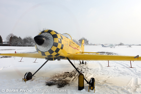 While this year’s game of Lučko Roulette – trying to fly your aircraft out before the field closes due to bad weather 😀 – has been generally successful, the constraints of the limited apron capacity at Zagreb Intl. meant that a few aircraft (notably those with a hangar above their heads) have nevertheless remained at the field. Faced with the prospect of them sitting idle in sub-zero temperatures until the runway melts and dries out – which can take awhile – the “flight ops department” of Aeroklub Zagreb had once again decided to clear out its hangar and give everything in there a thorough shakedown :).