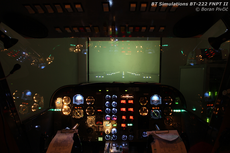 The Office :). Noticeably more complicated than the Seneca-based BT220 previously featured on this blog, the BT222 - produced by the same company, BT Simulations of Austria - is designed to simulate a "generic turboprop", but is in fact closely based on the Piper Cheyenne IIIA slightly different view from "the jump seat". While not the most advanced or modern training device to see the light of day, the BT222 has all the ingredients required for the basic MCC course: dual instruments for both crew members, an autopilot to help reduce the workload - and numerous "failable" systems to keep you on your toes :). The approach charts you see clipped to the yokes are for Pula airport's (LDPL) VOR/DME approach for runway 27, which my teammate and I had just completed with flying colors (literally as you can see) 🙂Lit only by the soft glow of the "Simulator run in progress" light, DZG and DZA (a Cessna Skyhawk SP) wait out another cold night in the hangar. Sitting here in the evening quiet, they keep reminding me of old, abandoned aircraft scattered in the underground tunnels common to several military bases in this part of the world...