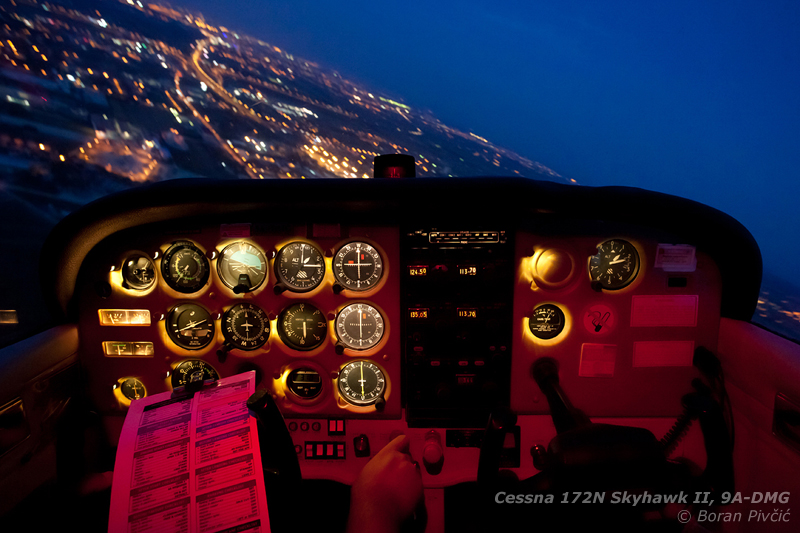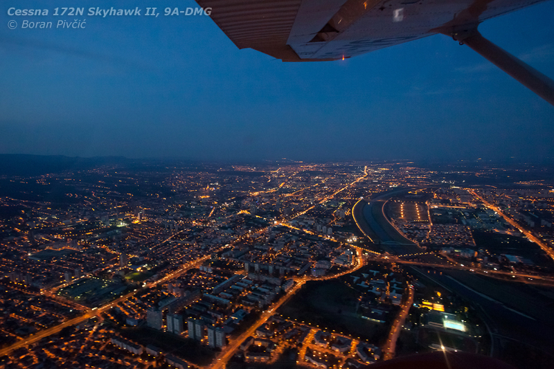 Having become slightly stir crazy with the pedestrian pace of general aviation in Croatia of late, a friend of mine and I decided it might be a good idea to go and unwind a bit in the wild blue above the country’s capital of Zagreb :). Growing bored of constantly overflying the city by day, we decided we might just as well enjoy the view during sunset – so timing it just right on a beautifully calm summer afternoon, we fired up our trusty C172 and headed out of the quiet field…