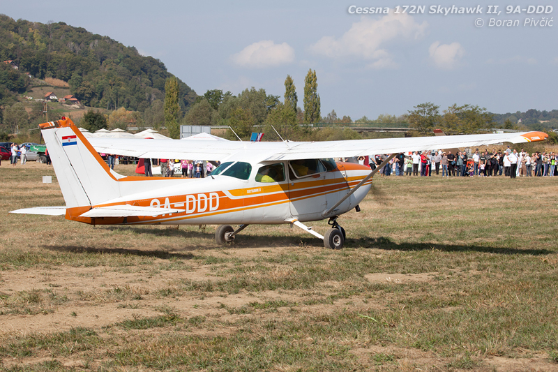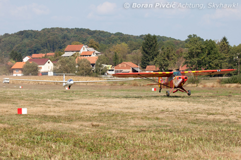 The first powered aircraft ever to land at Gubaševo - and incidentally the aircraft on which I'd logged the most flight hours 🙂 - Triple Delta is seen taxiing towards the waiting crowd, with the prefect of the Krapinsko-zagorska županija (county) on board. Officially named Krapinsko-zagorski aerodrom Gubaševo (roughly translated as "Krapina's and Zagorje's airport Gubaševo"), the airfield was quite a big thing that day :).
