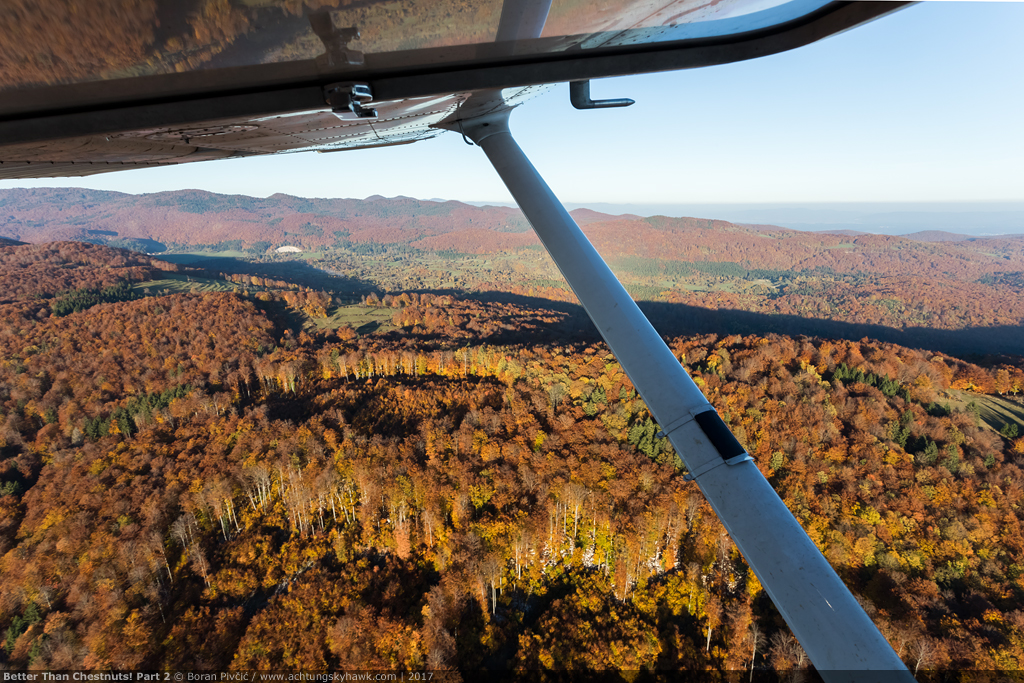 Those wonderful autumnal pleasures: a light aircraft, a deep anticyclone, an open window – and a full spectrum of colors outside. Enjoying the calming and serene view as we hop between the peaks of southern Slovenia’s Kočevje Hills – in years past, interestingly, a strongly-enforced no-fly zone due to the proximity of a major Yugoslav People’s Army military installation.