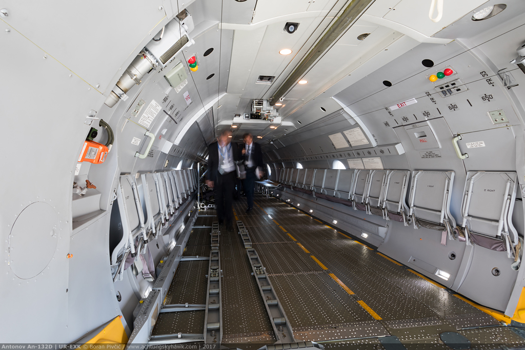 Shown to the West for the first time right at Paris, UR-EXK – wearing serial 001 and still the only one of its type in existence – had attracted quite a bit of attention, despite the presence of much eye candy all around. A new-build airframe (as opposed to a conversion of an existing An-32), UR-EXK is scheduled to be used solely for certification purposes – which naturally means that it is not 100% representative inside or out of the aircraft people will actually be able to buy.