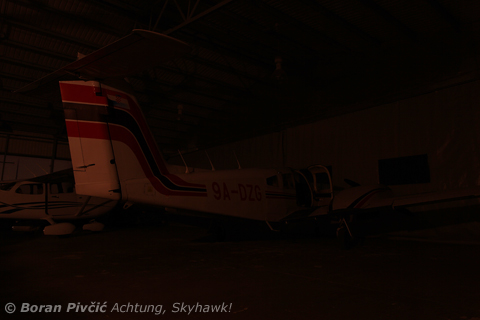 Despite completely disregarding normal University working hours – neither the first nor the thing to do so 😀 – my ongoing Multi Crew Coordination (MCC) simulator course had turned out to be a more fulfilling activity than I had previously anticipated; not only has it introduced me to the essentials of operating multi-pilot aircraft, but its late-night five-hour simulator sessions – sometimes running into the wee hours of the morning – have also provided me with valuable insight into the odd working hours of the professional flight crew. But for the photographer in me, there was also the quiet satisfaction of having a deserted, dark hangar – and my always ready camera – to play with :D. And while there were very few photo opportunities – with most aircraft temporarily relocated to Zagreb Intl. – I decided to make the best of the situation… 🙂