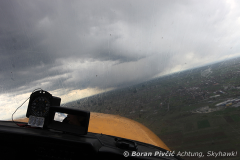 Receiving a free - and thoroughly ecological 🙂 - wash as we fly through the fringe rain of yet another TCu on our way back to Lučko. Carried on by the cloud's downdrafts, the rain can start some distance from the actual cloud - but, given the TCu's small area, you're usually in and out of it in a matter of seconds