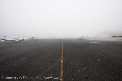 For some odd reason, nobody was flying this day :D. To give a measure of the thickness of the Zagreb Winter Fog, the control tower - barely visible in the back - is just 90 or so meters away from me...