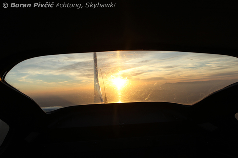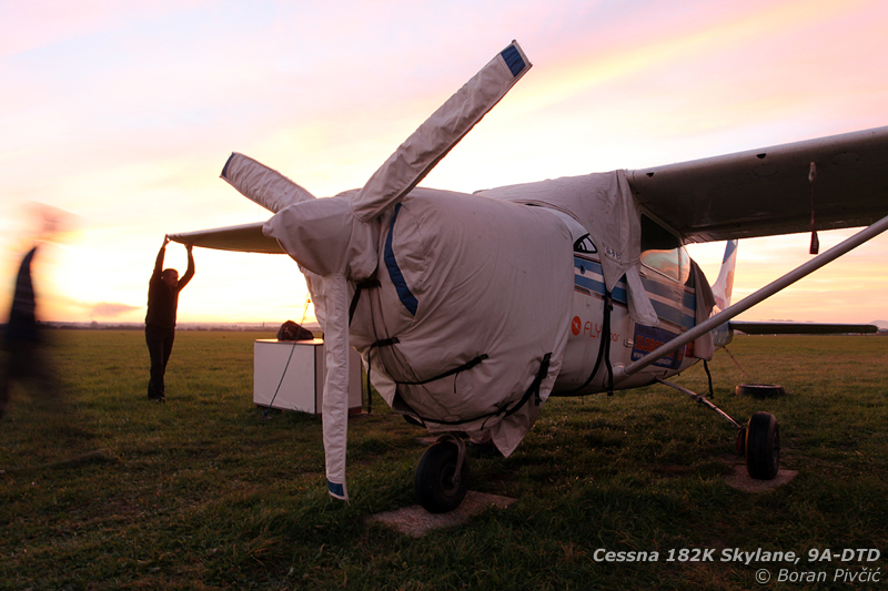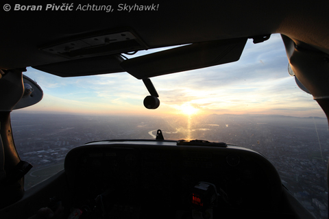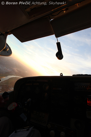 Just a whiff of altostratus and a trace of mist remain from the morning's thick fog as we leisurely cruise above the western districts of ZagrebSmooth skies, a beautiful ride, silence on the frequency, the setting sun and the thunder of the 230 HP O-470... scenes like this are what make it all worthwhile! 🙂Set the controls for the heart of the Sun :). Late afternoon flights never leave me disappointedOne of the advantages of the Skylane - an unobstructed view towards the back 😀Banking left to enter the pattern for landing back at Lučko :). Though not clearly visible, the aircraft's instrument setup has also been upgraded with a digital CHT/EGT monitor, as well as a skydiving altimeter on the pilot's yoke9A-DTD getting tucked in for the night, with an added impressive autumn background 🙂