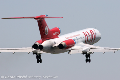 A beautiful - and freshly repainted! - KMV Tu-154M just starting its gear retraction sequence after a noisy RWY 13 departure, bound for Moscow. Ever since Aeroflot pulled the 154 from commercial service, they've become an increasingly rare sight, European spotters now having to make do with occasional charters such as this one...