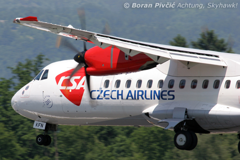 "What's In A Name" continues with this somewhat less exciting Czech ATR-42-500 flying in from Prague. Nowadays never expanded, "CSA" actually stands for "Československé Státní Aerolinie", or "Czechoslovak State Airlines", formed in 1923 in then-Czechoslovakia as one of the world's oldest airlines. By the time Czechoslovakia dissolved in the early 90s, the CSA brand (and especially the acronym) had become well known and established, prompting the company's new owner - the government of the Czech Republic - to keep it, thus forming "CSA Czech Airlines"