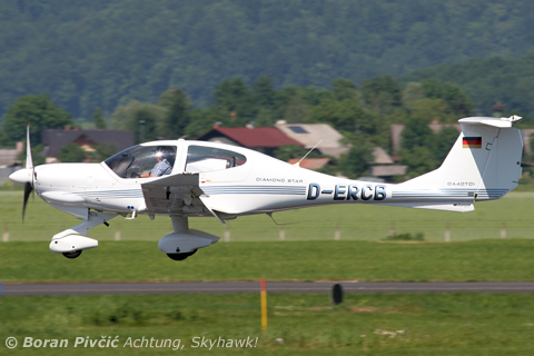 Yay, lighties! 😀 An almost perfect profile view of a Jet-A powered Diamond Star as it aims for the touchdown markings on RWY 31
