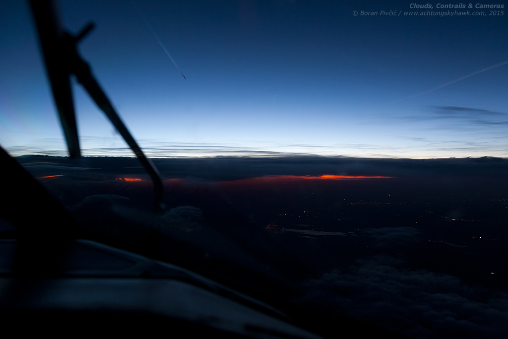 A snap I’d borrowed from a previous post – but one I just couldn’t leave out. Saluting the setting sun on another beautiful, calm and crisp summer evening. Traversing southbound above the Northern Adriatic Sea – just off Pula Airport (PUY/LDPL) – we were treated to this fantastic view by a large high pressure area that had been parked over the region for several days…